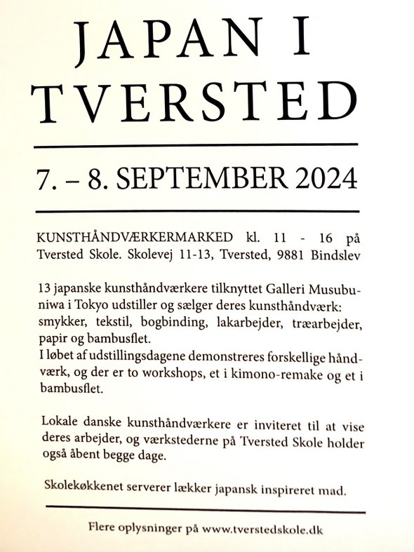 De japanske kunsthåndværkere er tilknyttet Galleri Musubuniwa i Tokyo. I Tversted udstiller og sælger de deres kunsthåndværk, som er smykker, tekstil, bogbinding, lakarbeder, træarbejder, papir og bambusflet.