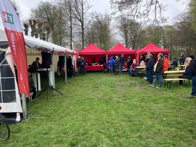 Her blev der serveret grillpølser, kartoffelsalat, fadøl og sodavand, og formand Carsten Andersen holdt 1. maj tale for de fremmødte.