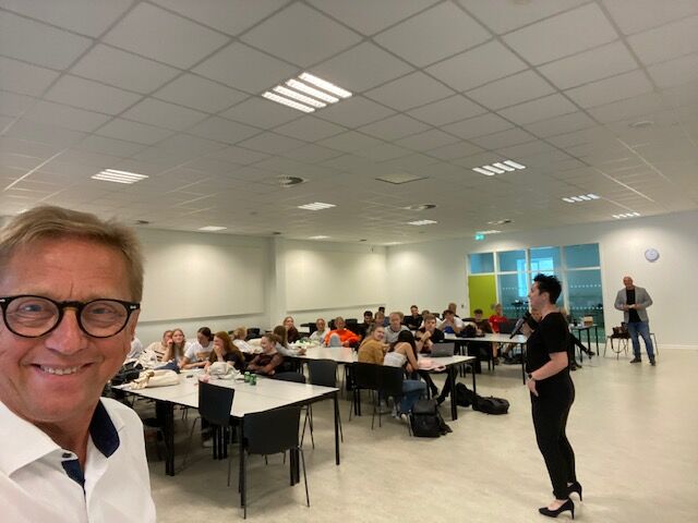 Efter mødet med fiskeriets repræsentanter gik til Hjørring Gymnasium. Her holdt Asger Christensen et indlæg om sit arbejde i EU for ca. 75 elever på 3. g, hvor han bl.a. synliggjorde EU’s betydning også for det lokale område. Efter indlægget var der en livlig debat med en flok spørgelystne elever.