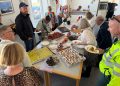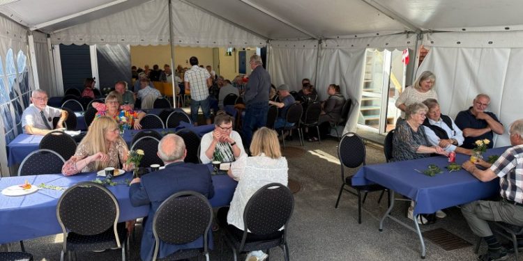 Derfor var der hele eftermiddagen masser af folk til det helt store kagebord og pølser.