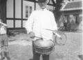 Trommen og pynten skulle tiltrække kundernes opmærksomhed. To af mændene på billederne er iført en blændende hvid arbejdsskjorte. De var hesteslagtere. Kunderne kunne således bese råvaren i levende live, inden bøffen eller stegen til middagsbordene skulle bestilles.
