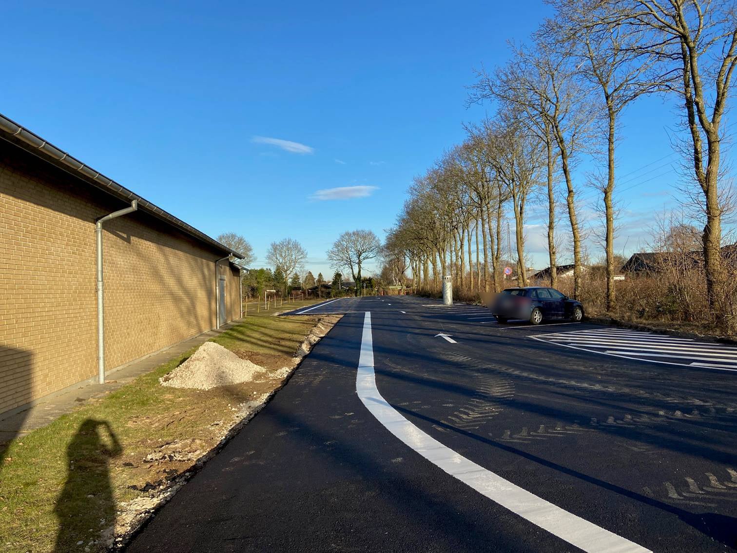 ✔ På baggrund af konkrete henvendelser fra forældre bliver der etableret afstribet fodgængerrute på p-pladsen.
