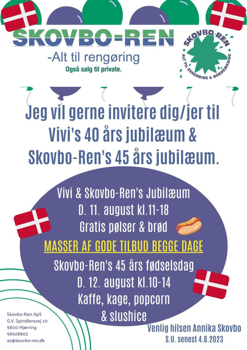 Nu kan direktør Annika Skovbo så invitere ikke bare til virksomhedens 45 års jubilæum den 11. august kl. 11 til 18, men samtidig også Vivi Skovbos 40 års jubilæum.