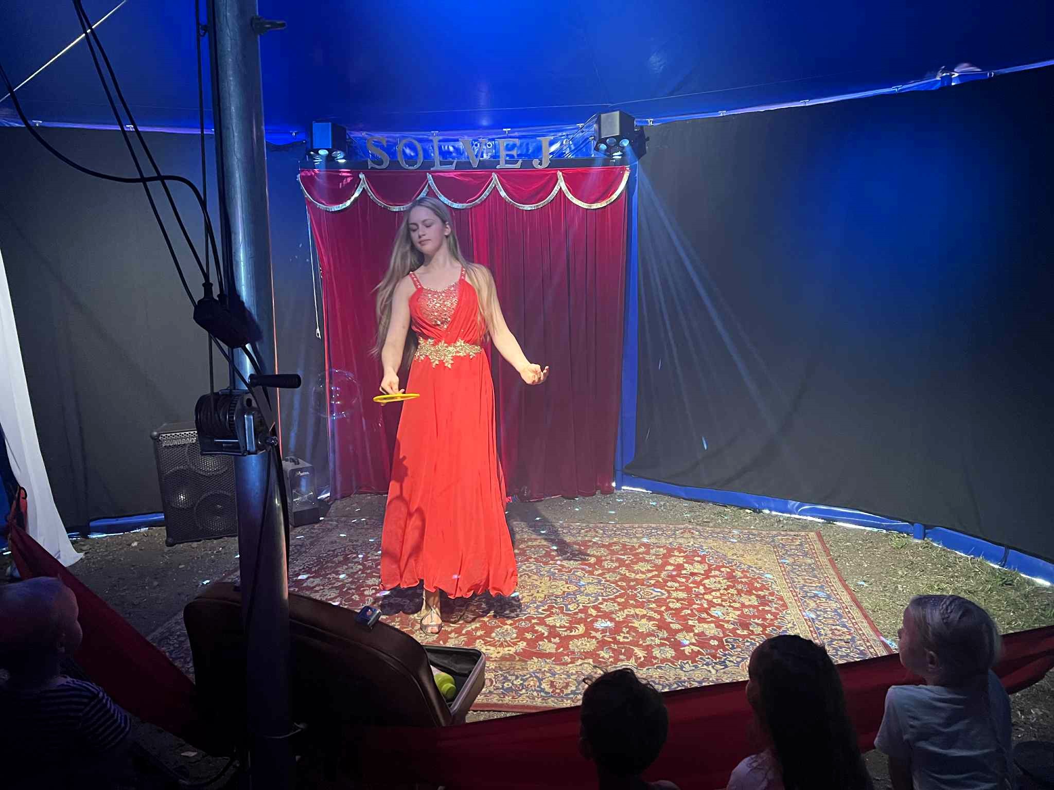 Det blev for os gæster til en oplevelse, som både børn og voksne sent vil glemme. Forestillingen, som blev opført for anden gang i byen, trak fulde huse, teltet var totalt udsolgt, og stemningen i top allerede fra begyndelsen.