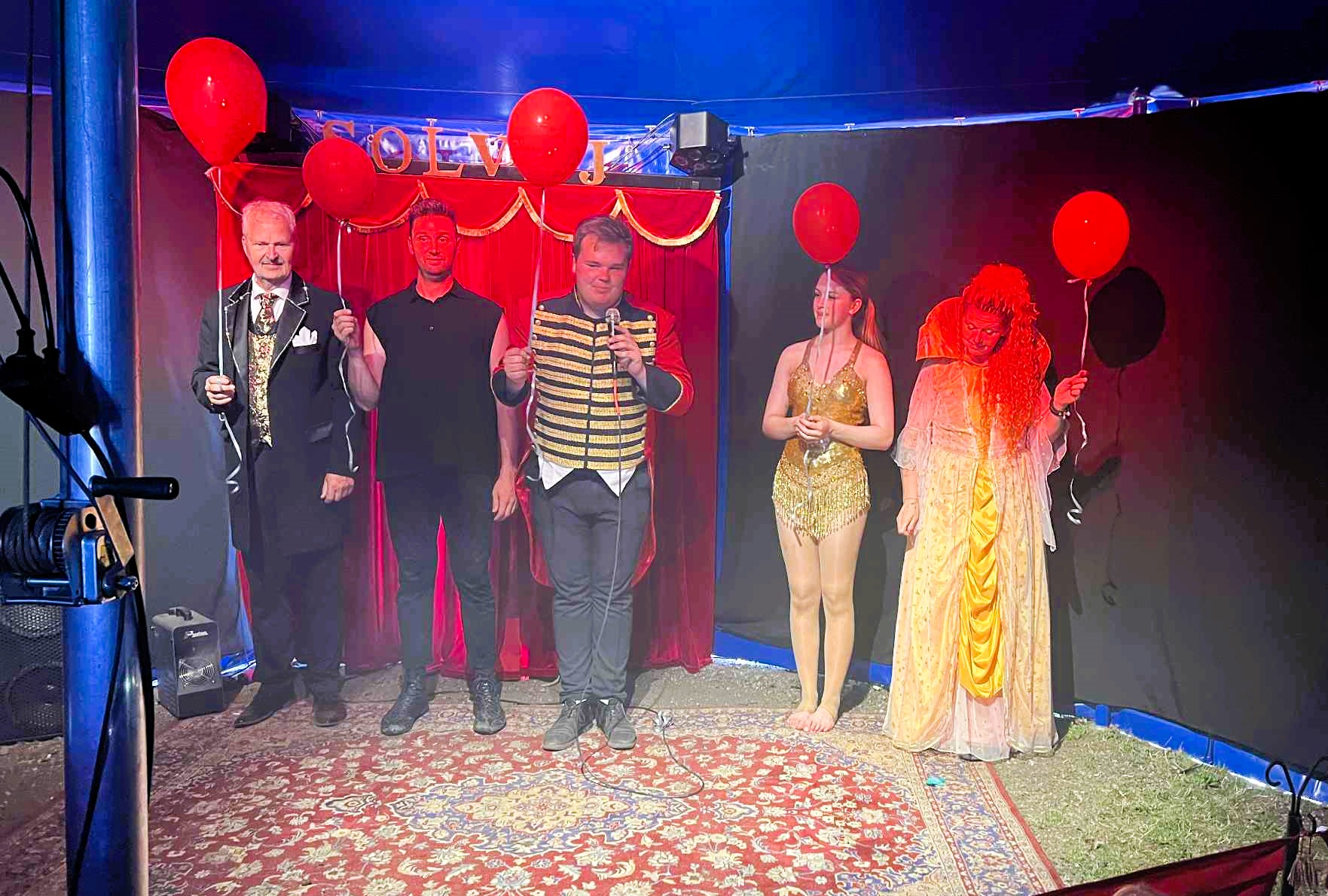 Direktøren Victor bød velkommen sammen med sit farverige hold bestående af jongløren Jonas, artisten Frida, buetaler Preben og den alsidige Bettina. Sammen leverede de en forestilling fyldt med varme, humor, dygtighed og masser af charme.