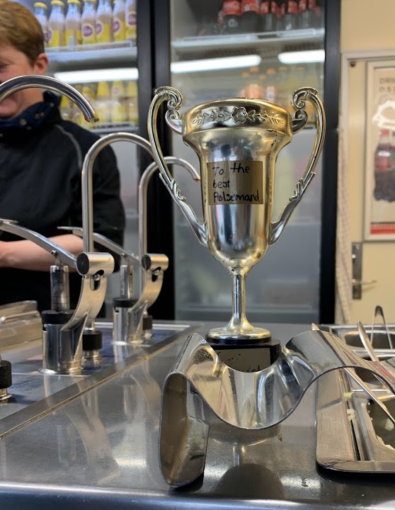 Tina fortalte, at hun var sæson-medarbejder, og kun arbejder om sommeren, men arbejdet forsvinder sammen med turisterne, når vejret bliver koldere. Med et stolt blik, hev Tina et trofæ frem, hvorpå der stod ‘To The Best Pølsemand’.