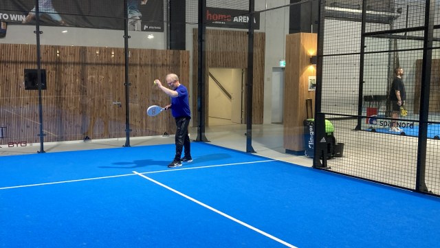 Da der er gået en halv time kommer Martin, der er centerleder hos Padel Club Hjørring. Han fortæller engageret om padel og de regler, der gælder i spillet. Ingen af mændene har tidligere prøvet padel, som stadig er en ny sport i Danmark.
