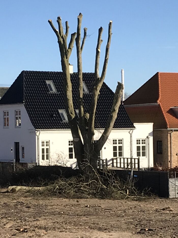 Bortset fra det, så er store træer ikk sådan at slå ud; men i dette tilfælde , hvor man ikke har rodbeskæret, så skyder det kratigt igen med massser af “barberkoste”.