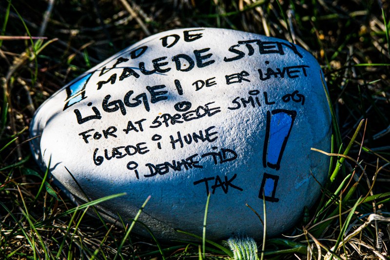 I april stødte jeg helt uforvarende ind i en hel række bemalede sten… Skulle lige strække ben på parkeringspladsen ved Hune Kirke… Det fælles budskab handler om at sprede glæde og håb… Hvor den herlige trend er opstået, ved jeg ikke, men mon ikke det har bredt sig ud over det ganske land… Sten med håbefulde tekster er ihvertfald registreret også i Hirtshals… ”Det bliver bedre”… og tak for det… Bliv bare ved med at poppe op…