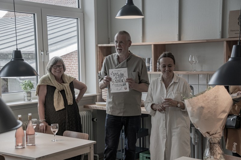 I juni blev det ufrivilligt lange ophold i Tversted – bla fordi det ikke var muligt for Helle Marietta og Jørgen Smidstrup at tjekke basen i Berlin – krydret med en bogudgivelse, der favnede gæsternes madlidenskab med værtindens lidenskab og garner og deraf følgende strikkekunst… Marianne Isagers opskrifter kan bruges alle andre steder end i køkkenet… og dog…