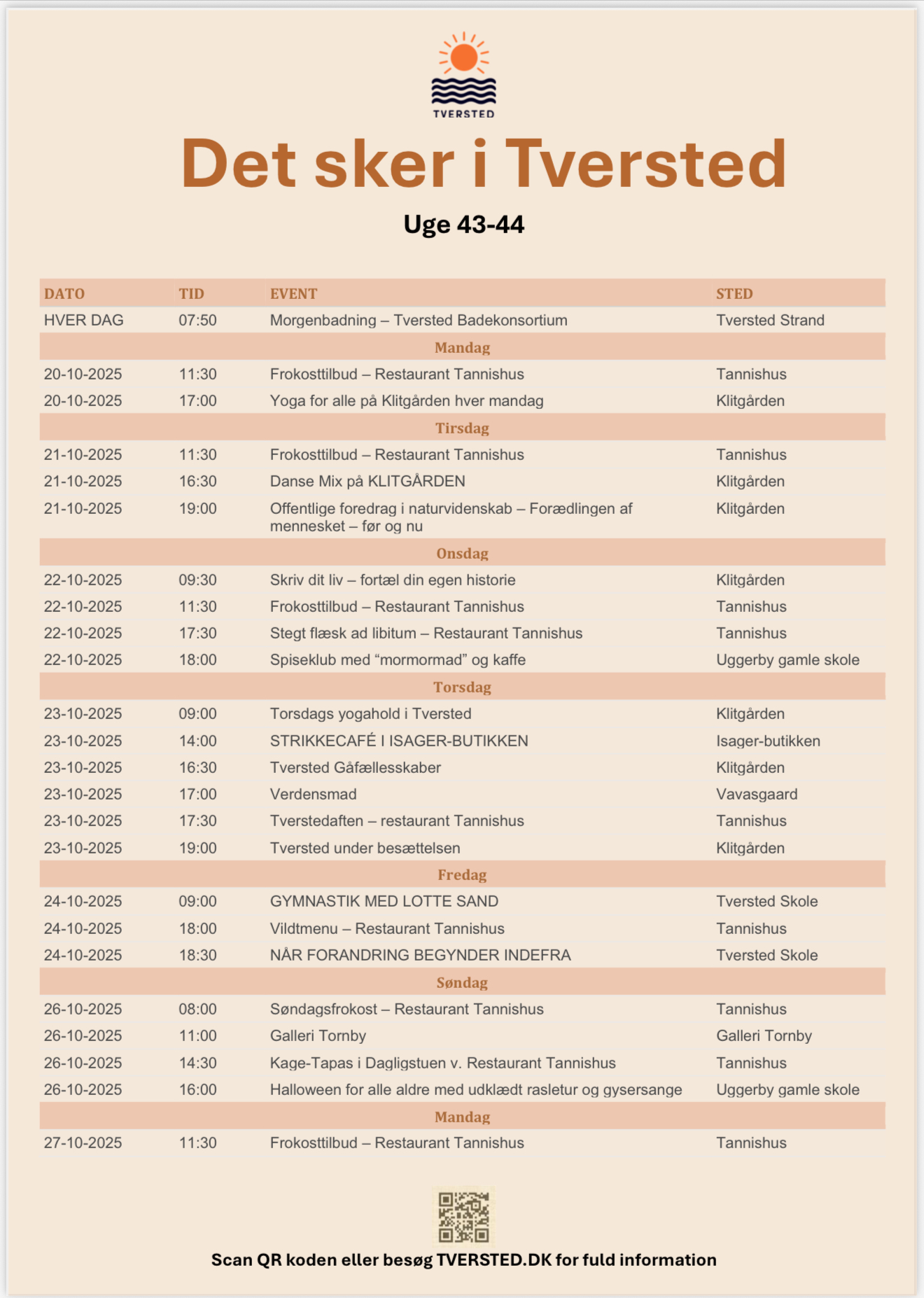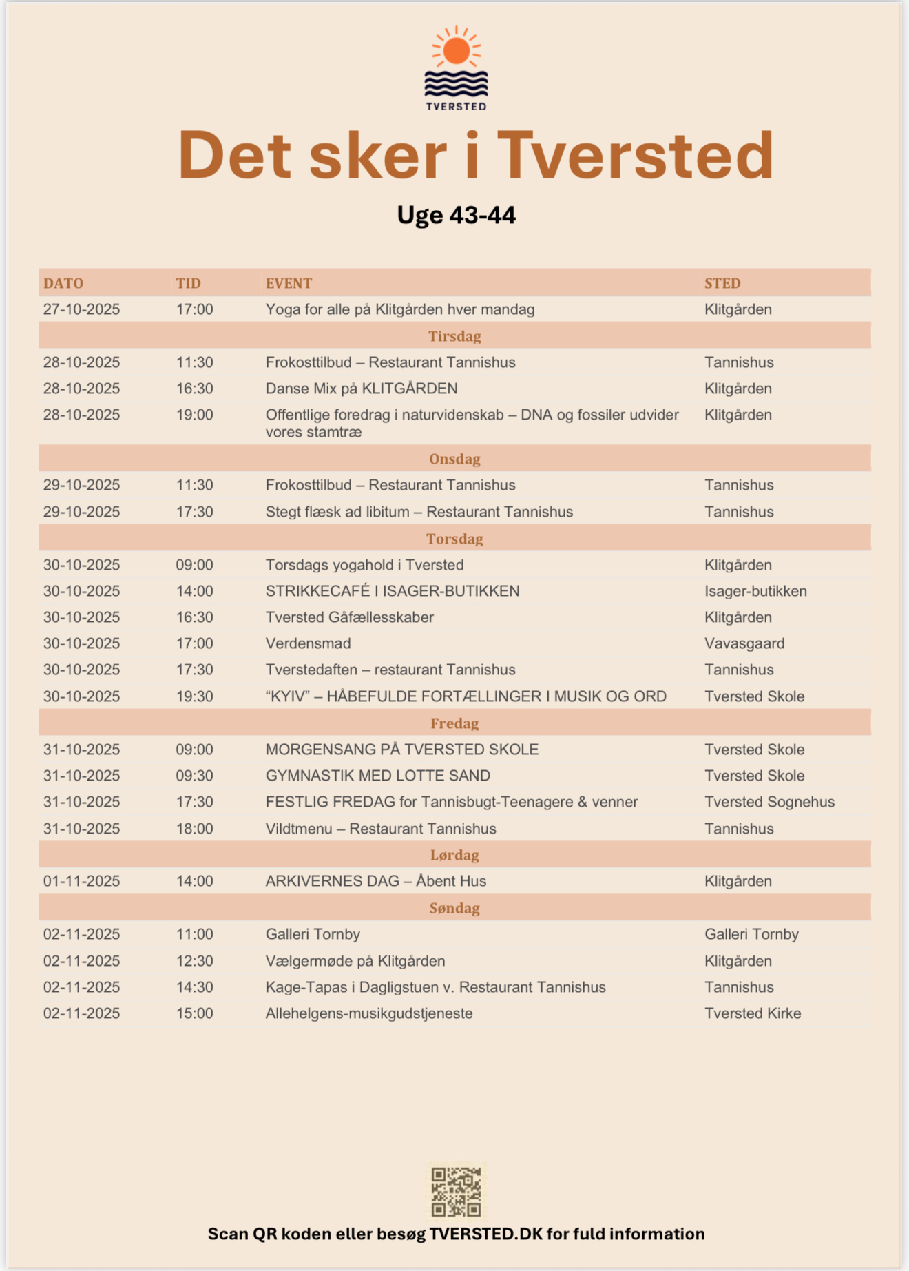 Der registreres årligt cirka 1.500 aktiviteter i Tversted Fælleskalender. Oplysninger om aktiviteter kan sendes ind til [email protected].