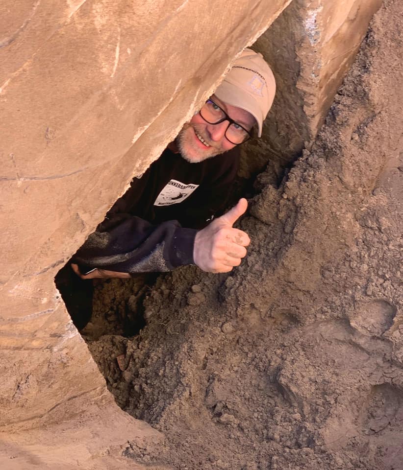 – Fundablokke, beton og jernarmering blev derfor helt i bunkerens historiske ånd støbt op for døren, hvorefter et par kubikmeter stabilgrus blev banket ned ovenpå for at sikre stabiliteten på grusvejen, fortæller Flemming Hammer, som er formand for Bunkergruppen Hirtshals.