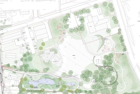 Det bakkede landskab ud mod Skolevej og Østervej skabes af overskudsjord fra seperatkloakeringen i byen. Vi forventer derfor at størstedelen af vores projekt først iværksættes i 2026.