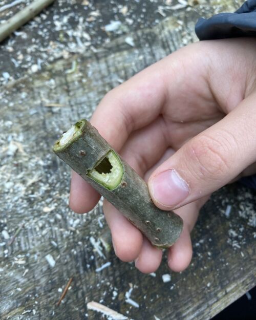 Gennem de fire forløb har eleverne prøvet kræfter med blandt andet produktion af armbånd og hyldefløjter. Har du lyst til på lignende vis at lære at lave en hyldefløjte, så tag børnene under armen og kom til kartoffeldag i Mosbjerg.