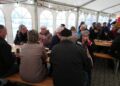 Det store telt på parkeringspladsen blev hurtigt fyldt op af de mange kunder og leverandører og repræsentanter fra mange forskellige foreninger. I teltet bød medlemmer af bestyrelsen på små lækre kager, vin, øl og vand m.v. Alle var mødt op for at sige farvel til brugsuddeleren Klaus Kold fra Dagli´Brugsen i Bindslev.