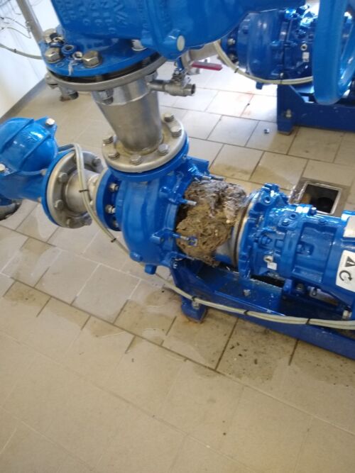 Billederne viser for eksempel en af selskabets tilstoppede pumper og hvad der gemte sig deri.