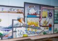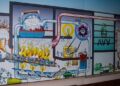 Herfra gik det så rundt på værket med indblik fra affald til fuld blus på ovnen, idet turen i højden gik forbi et herligt skilderi, der illustrerede proces fra affald til varme og el…