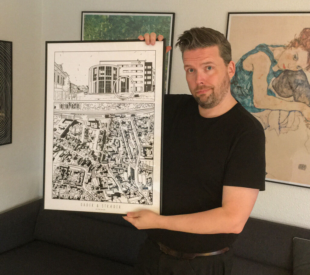 “Jeg er spændt på hvor dette lille plakateventyr ender, for det var helt utilsigtet at det skulle starte. Men foreløbigt handler det om at gøre nogle folk glade for deres kunstplakater, og ellers bare tegne videre på Hjørring-tegneserien – for der er mange, mange steder der stadig mangler at blive tegnet.”