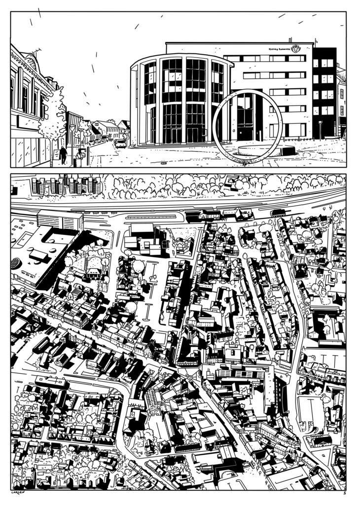 I årevis har grafiker og tegneserietegner Kim Larsen taget tilløb til at lave en tegneserie, der foregik i hans hjemby Hjørring. Flere forskellige indgangsvinkler på historie og format har været oppe og vende i tidens løb, men det endte med at blive inspiration fra tegneserien “Manden der går tur” af japanske Jiro Taniguchi, der endelig satte form på projektet.