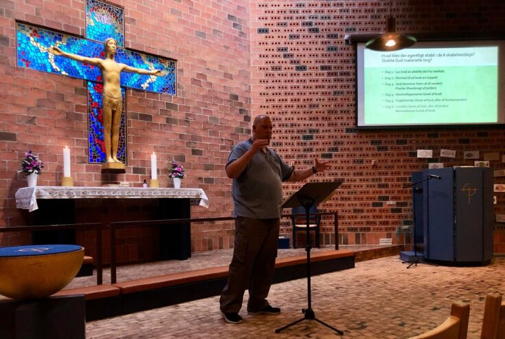 Sognepræst Poul Steenbeek belyste blandt andet emnegennem historiske træk af opfattelsen af forholdet mellem videnskab og tro. Tilhørerne blev derved ført gennem skabelsesberetningens 6 dage, både i forhold til den kultur og livsopfattelse, den er skrevet ind i og som en analyse af selve beretningen. Afslutningsvis blev der lavet en sammenstilling af skabelsesteorier og klimabevægelse. Det er tydeligt, at Poul Steenbeek har en stor og bred viden og interesse omkring dette emne. Tilhørerne fik kort fortalt et sammendrag torsdag aften, men der vil bestemt være stof til meget mere.