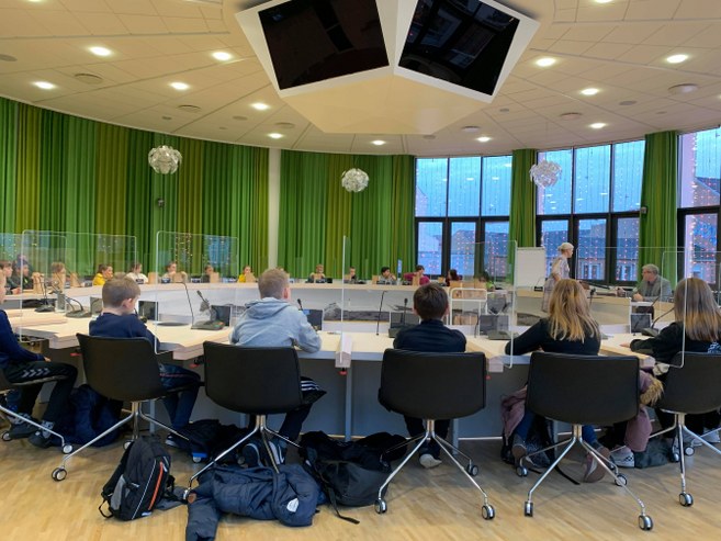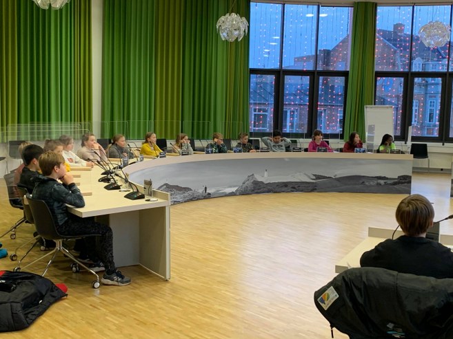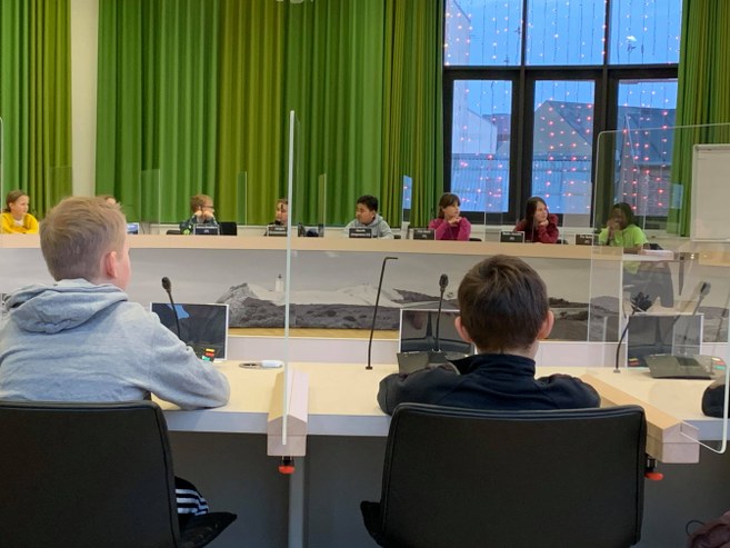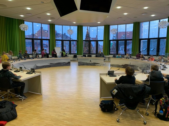 Elever fra 4. årgang i SkoleCenter Hirtshals var i dag inviteret på besøg i byrådssalen hos borgmester Arne Boelt.