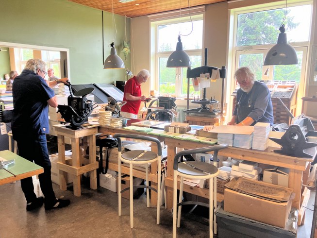 Et besøg i trykkeriet og hos bogbinderen er også en tur tilbage i tiden, hvor de flotte maskiner trykte bogstaver i bly, og hvor der skulle stort håndværk til at sætte tekster til for eksempel aviser. I dag er den opgave jo næsten helt overtaget af digital teknik.