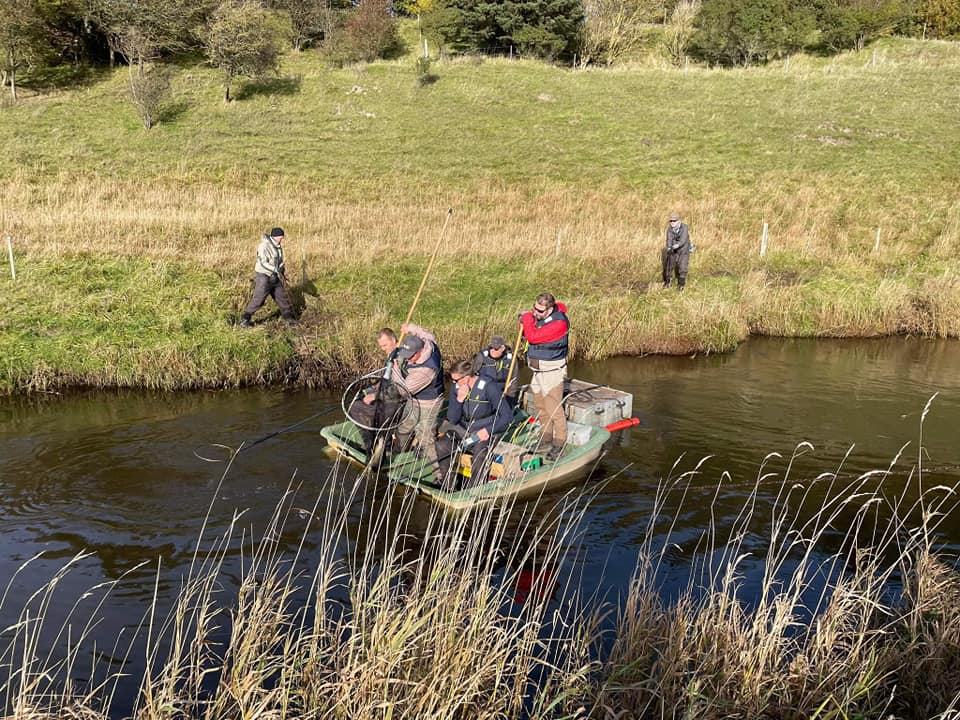 Vejret kunne de ikke klage over, for de havde lørdag det skønneste solskin hele dagen, og humøret blandt de hjælpende var i top hele dagen. Da de kom til vejs ende, stod de med 24 fisk i hyttefadet. Deraf 19 havørreder og 5 fine bækørreder, der alle var taget neden for Varbro Å.