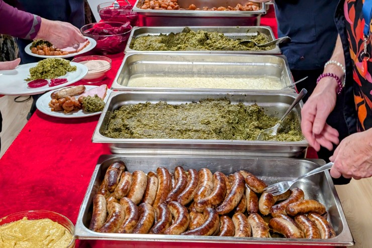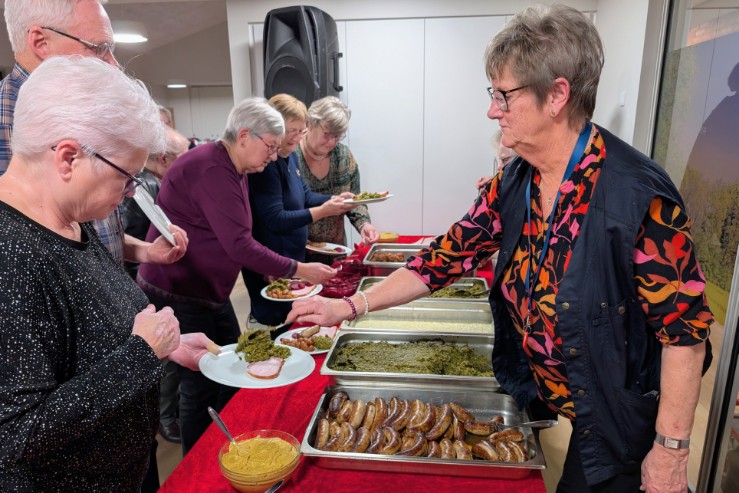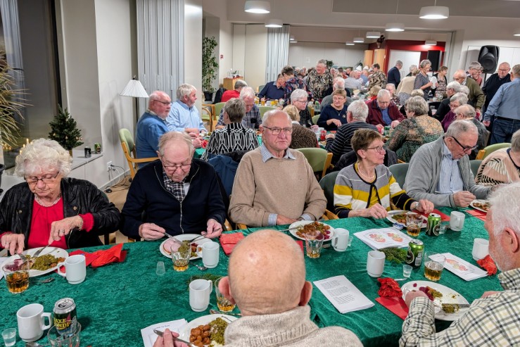 Trods 140 tilmeldte var der kun plads til 110 gæster, selv med alle tre foreningslokaler i brug. Stemningen var i top, og de fremmødte kunne nyde en overdådig julefrokost leveret af Bindslev Hotel. Sild, kål med tilbehør og risalamande gled ned, akkompagneret af hyggelig musik fra den populære duo Lonnie og Bent.