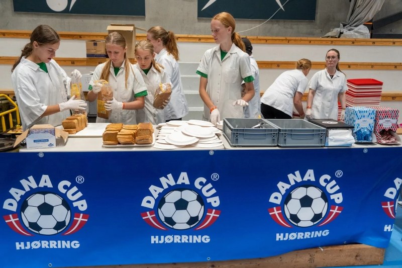 – Ved morgenmad og frokost har vi således droppet udlevering af bakker, således at vi sparer ganske meget vand til vask af bakker, forklarer Hanne Brusgaard, der er ansvarlig for serveringen ved Dana Cup.