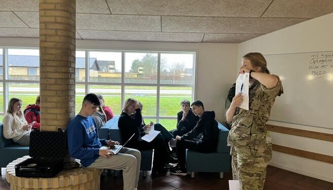 Bedst som eleverne troede, de havde styr på planen, kom der endnu en ny opgave, der skulle løses inden deadline. Dagen sluttede med fælles briefing og en snak om livet i Forsvaret.