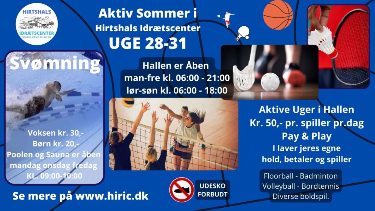 Som noget helt nyt vil Svømmehallen og Idrætshallen i ugerne 28 til 31 være tilgængelig på Halvejen i Hirtshals Idrætscenter.