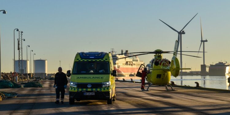 Tirsdag morgen er der kommet et alarmopkald, som har udløst en større udrykning. Både ambulancereddere og lægehelikopteren ankom til stedet på Hirtshals Havn.