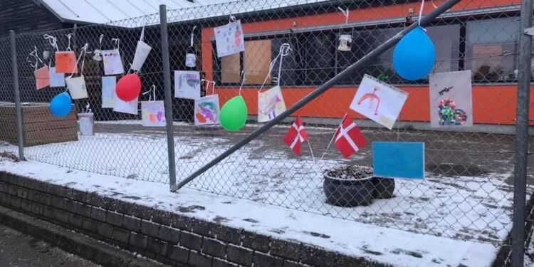 Det flotte syn på hegnet mødte mandag morgen alle ansatte, der var på vej på arbejde i Børnehuset Bjergby.