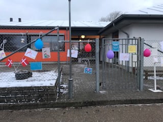Det flotte syn på hegnet mødte mandag morgen alle ansatte, der var på vej på arbejde i Børnehuset Bjergby.