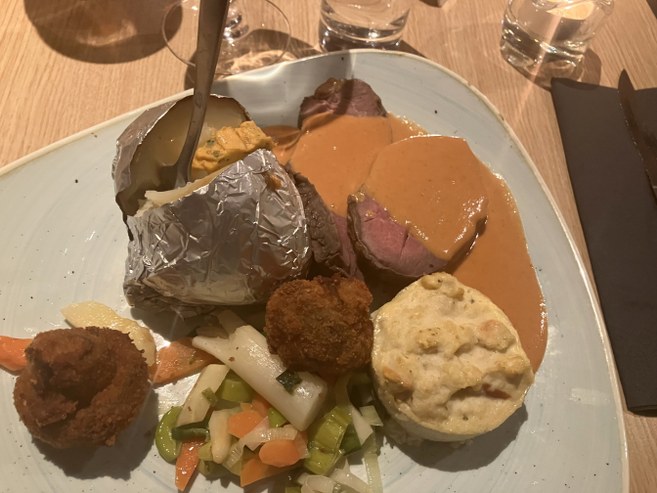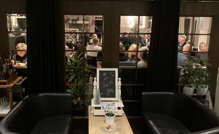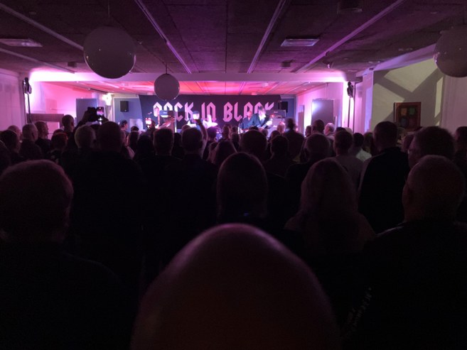 Gæsterne kom fra nær og fjern og fylde godt op både i de hyggelige stuer til spisning af Angus oksefilét med bagt kartoffel med kryddersmør, sautégrønt og ”a whole lotta whiskysauce” med tilhørende Back in Black rødvin og til den efterfølgende koncert i den store sal.
