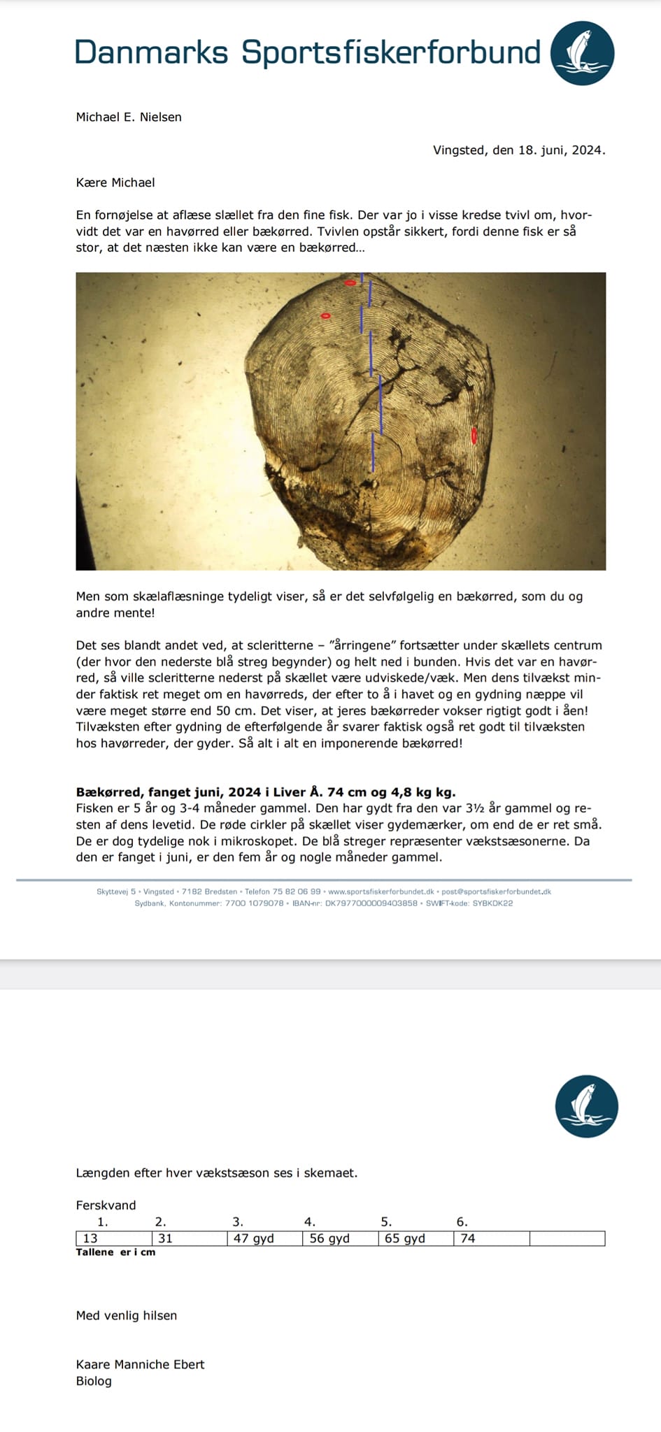 Så blev det endelig bekræftet, at det var en bækørred, som sidst i maj måned blev fanget i Liver Å. Ikke bare en stor bækørred, men en bækørred med rekord stor tilvækst, på niveau med havørreder andre steder i landet.