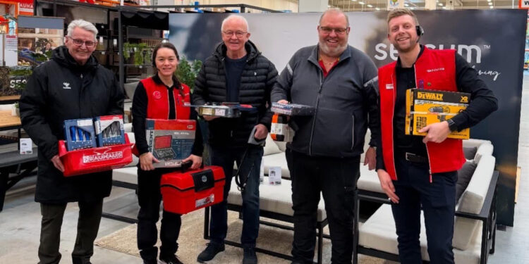 De friske frivillige var nemlig inviteret ud i Bauhaus i Hjørring, hvor de modtag en donation til en værdi af ikke mindre end 10.000 kroner til værktøj og redskaber.