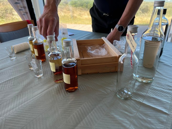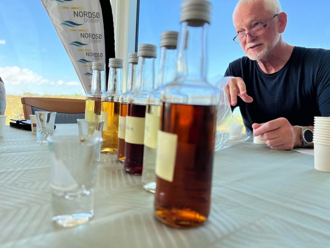 Der var da også lidt stemning af alkymisme eller den første kemitime ved opstillingen i Klitstuen på Fyrklit, da holdkaptajn Torben Elling lørdag havde indkaldt Palle W. Nielsen og Anders Skipper Brix Kjelgaard til fremstilling og smagning af Bjeskteam NordsøPostens bud på Årets Bjesk.
