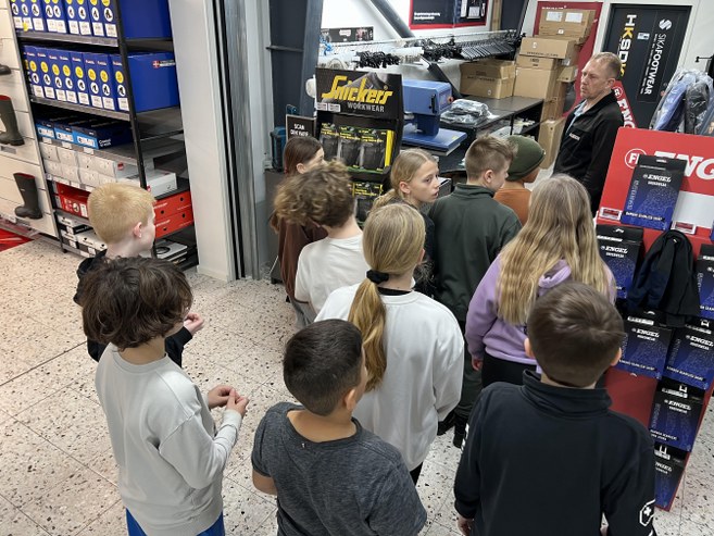 Torsdag den 25. januar var 4. klasse fra Bindslev Skole derfor på et planlagt virksomhedsbesøg hos den lokale Bygma. Her fik eleverne en guidet rundvisning ved Kaspar Bech Grøn, som blandt andet fortalte, at Bygma i Bindslev, der har omkring en snes ansatte, faktisk i kraft af sit store lager servicerer kædens afdelinger i både Skagen, Hirtshals og Hjørring.