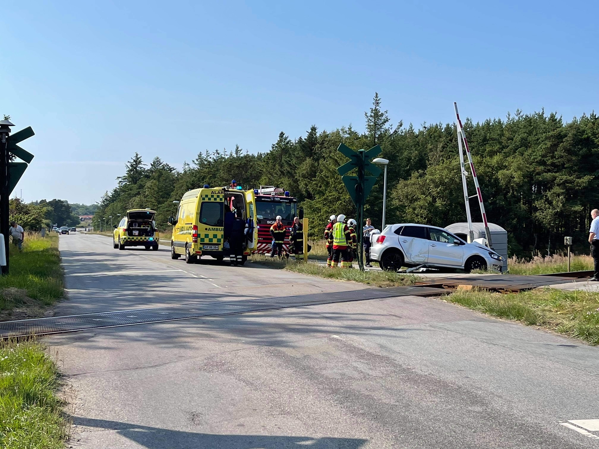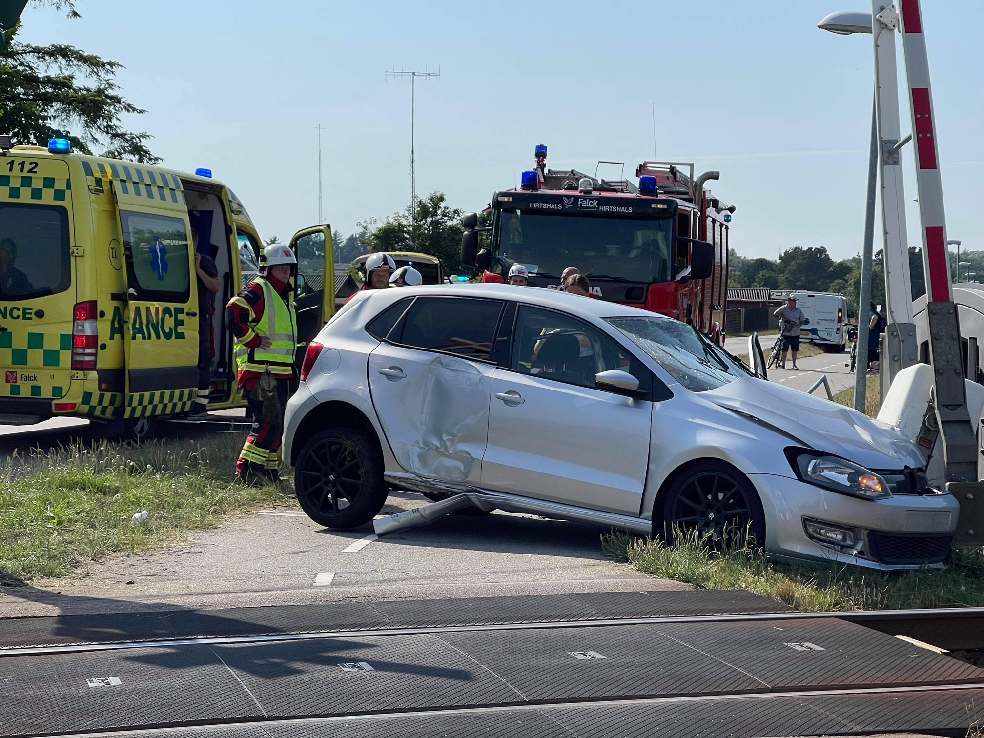 En bil er kort efter klokken 16 blevet påkørt af et tog i overkørslen på Søndergade i Hirtshals.