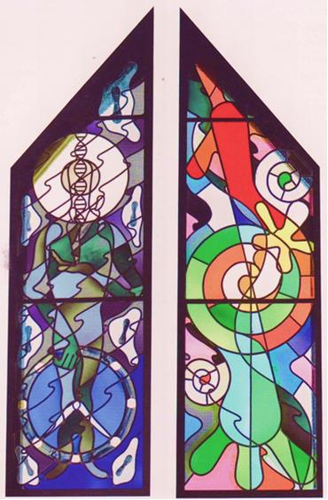 Men Bjørn Nørgaard har også sat sit præg på mange kirker i Danmark. Hans kirkelige gennembrudsværk, det smukke alterparti i Knebel Kirke (-2001), er skabt med tilsvarende forståelse af middelalderlig tradition såvel som moderne virkelighedsopfattelse. I Knebels påskemotiv finder vi både Jellingesten og DNA-streng.