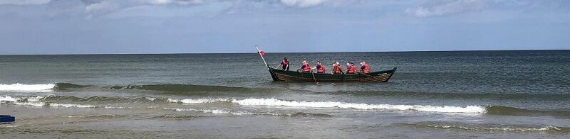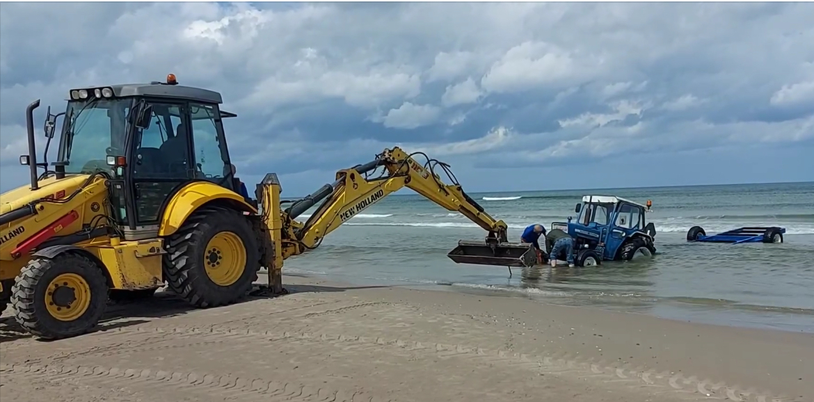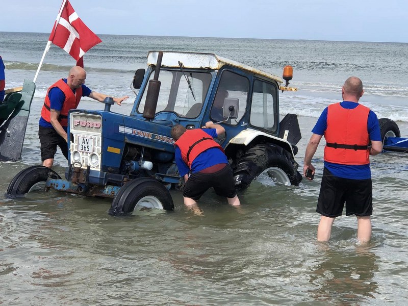 Tversted Bjærgelaug havde søndag første rotur i flot vejr ved Tannisbugt. Mens roningen forløb fint, gik det knap så godt med traktoren og traileren, som satte sig uhjælpeligt fast.