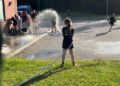 Der blev spillet lidt badminton, der blev spillet rundbold og der blev spist grill pølser. Men det store højdepunkt er jo “VANDKAMPEN”.
