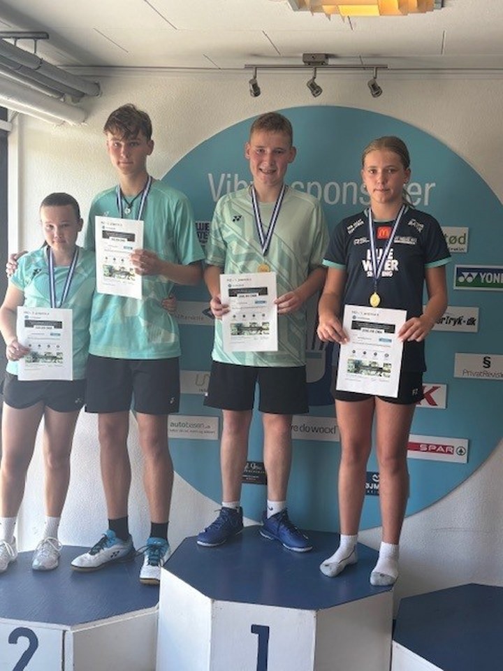 Kristoffer leverede også flotte præstationer og vandt guld i mixdouble sammen med Freja Nim fra Badminton Esbjerg samt sølv i herredouble med Marco Frølund fra Svendstrup.
