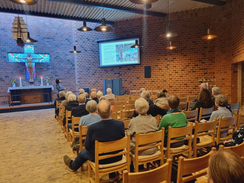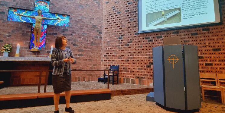 Birgitte Bech fortalte torsdag aften levende og engageret om Bjørn Nørgaards udvikling fra provokerende hesteslagter i 70’erne til anerkendt kirkekunstner.