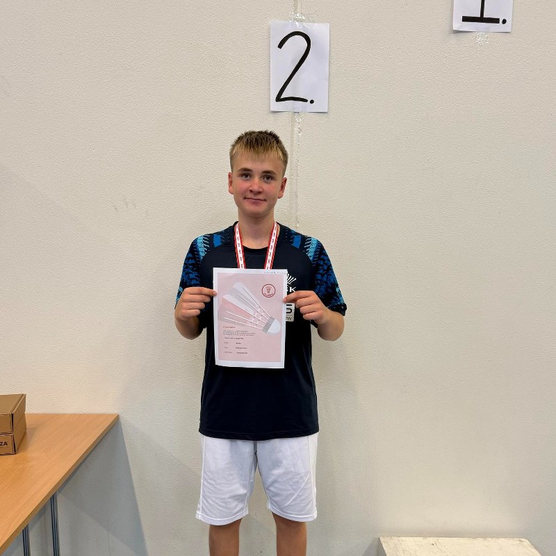 Også i Hørning var der succes. Her kunne Frederik Berntson tage guldet i U15M HS efter en flot turnering, hvor han holdt fokus hele vejen til finalen.