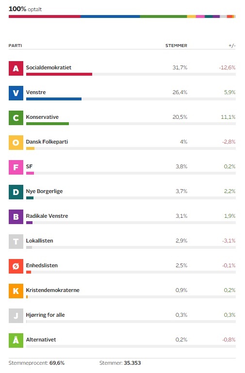 De endelige valgresultater ligger netop klar, og Socialdemokratiet mister 4.968 stemmer. Dermed går partiet 12,5 procentpoint tilbage og må sige farvel til hele fem mandater, så partiet har 10.