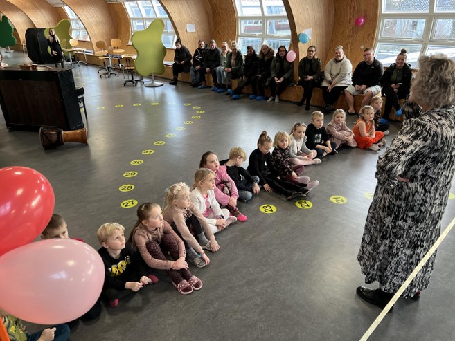 Afslutningsvis optrådte børnene med musik spillet på violiner, idet de har øvet numrene med musiklærerne Nanna Mørch Glifberg og Jakob Lundbye fra Hjørring Musiske Skole.