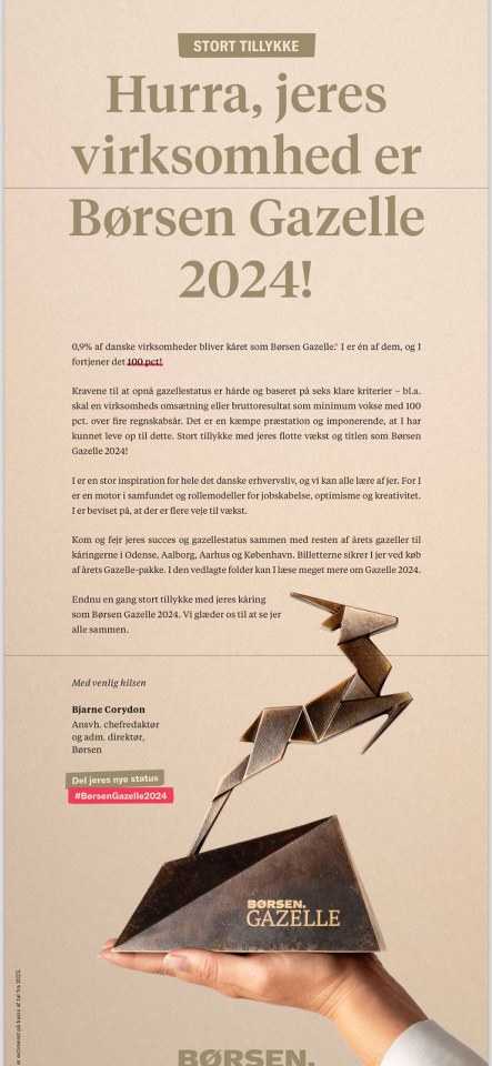 “At få titlen som Gazelle er en præstation, der kræver noget ud over det sædvanlige.” Børsen