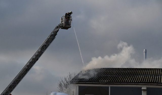 Industribygningen, som stod tom, har lidt betydelig skade, men der er ingen meldinger om personskade i forbindelse med branden. Brandfolkene arbejder fortsat på stedet for at sikre, at flammerne ikke blusser op igen.
